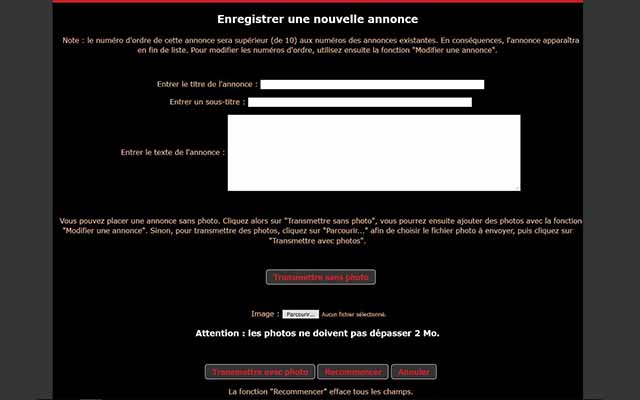 Si vous le désirez, vous disposerez d'une interface permettant de mettre à jour vous-même vos textes et vos images.
